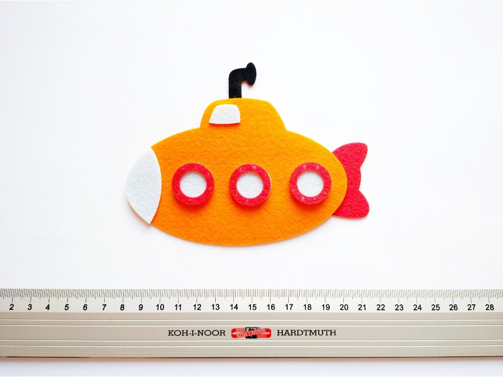 Výřezy ponorky z jedné vrstvy filcu určené k sešití.
