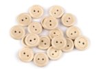 Dřevěný dekorační knoflík ve tvaru hodin.