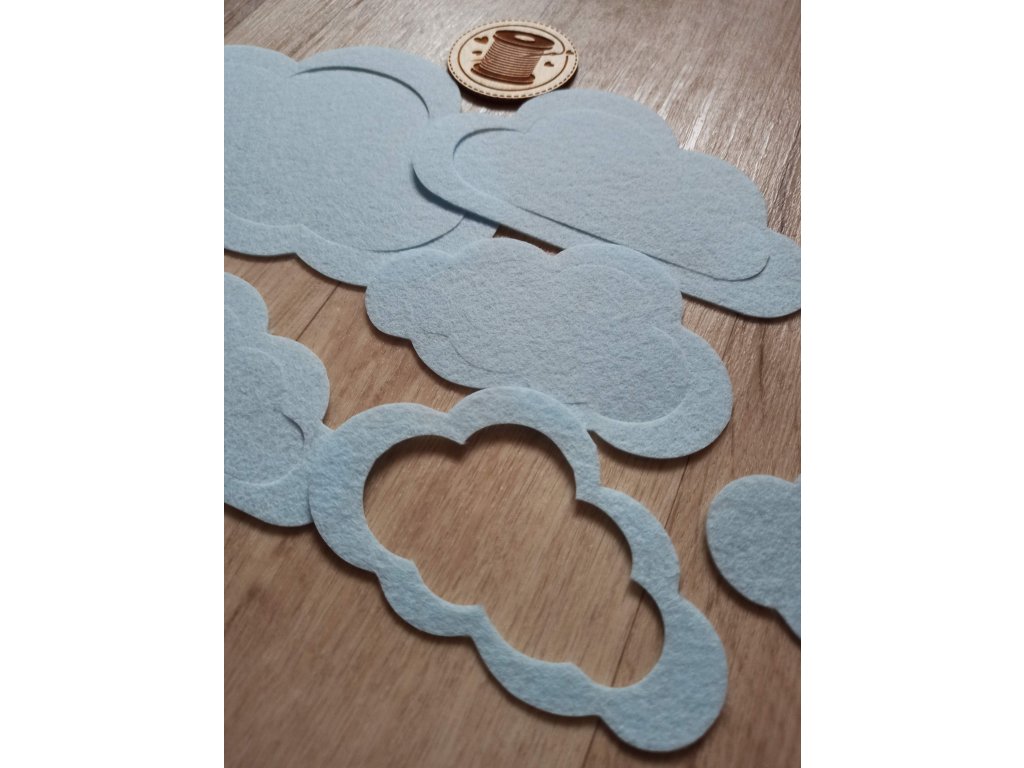 Zestaw wyciętych pustych chmur wykonanych z dwóch warstw filcu.