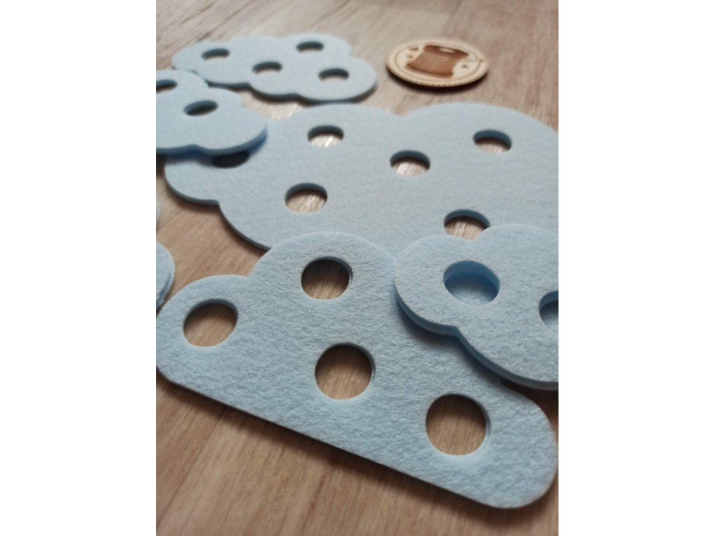 Zestaw chmurek z dwóch warstw filcu przeznaczonych do szycia.