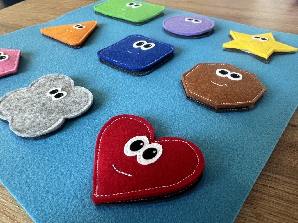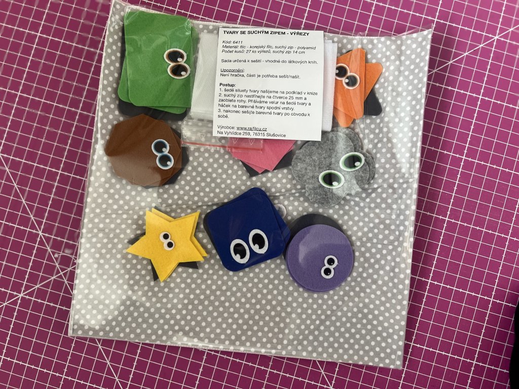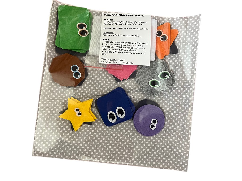 Kompletní sada materiálu k ušití oblíbené vzdělávací stránky do quiet booku. Díky ní si děti hravou formou procvičí poznávání základních tvarů, barvy a jemnou motoriku.